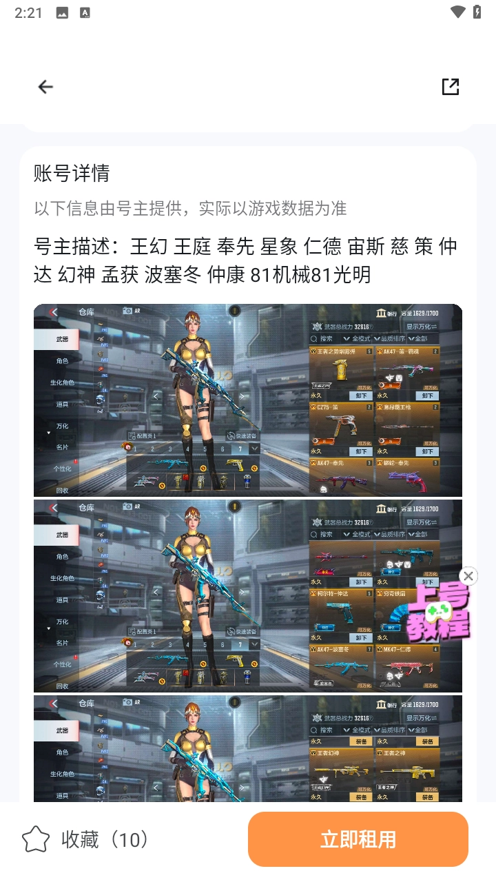 4、依据需求选好所需的游戏账号后,直接点击“立即租用”按钮就行。