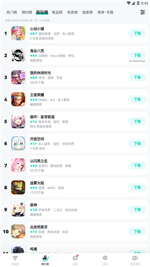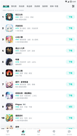 进入后即可看到各类榜单,例如热门榜、预约榜、热玩榜等。