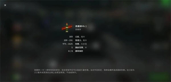 3、he(高爆弹):这类弹种的穿深通常较低(不过英国战车的高爆弹穿深比较高)。要是没能击穿目标,它会产生溅射伤害(但如果打在对方的履带、炮管上,或者用小口径炮打重型坦克,也可能完全造不成伤害)。可一旦击穿了,造成的伤害一般会比前两种常见弹种更高。不过高爆弹主要还是用来对付脆皮战车,或是在紧急情况下救命用的(比如对面坦克卖侧面,你和它都只剩一点血量,而你用的是大口径炮,这时打一发he到侧面,说不定就能救你一命)。建议少带一些,但不能完全不带。