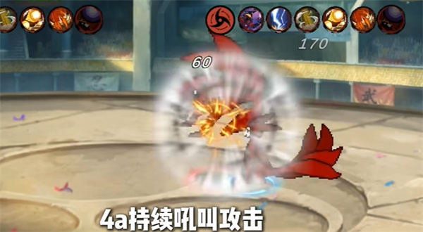 6、最后是奥义技能,通过蓄力释放大范围的尾兽弹进行攻击,该奥义能够衔接两个技能,配合使用可以打出非常高的伤害。