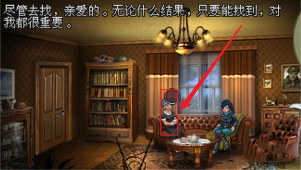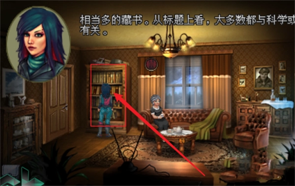 3、随后根据任务提示点击调查左侧书柜搜寻线索。