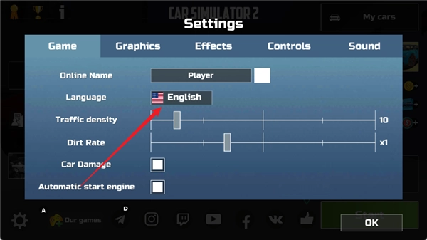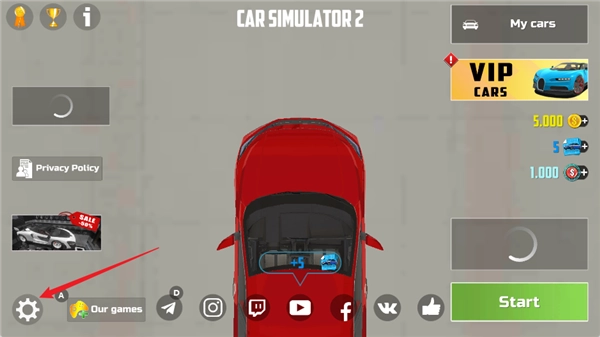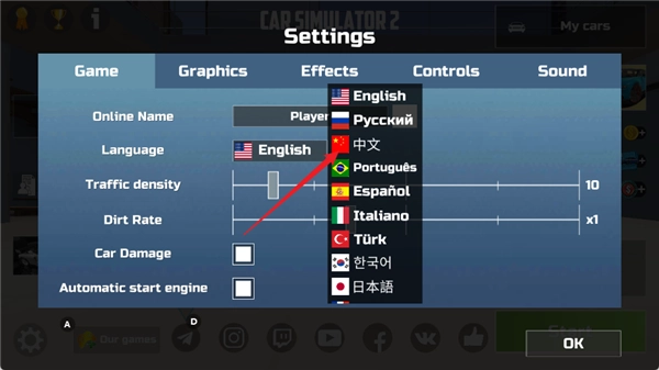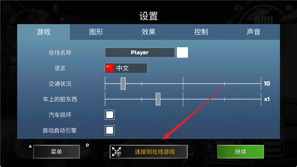 1、进入汽车模拟器2,点击左下角的【设置】按钮;