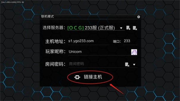2、接着选择服务器、主机地址和玩家昵称,之后点击【连接主机】。