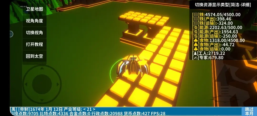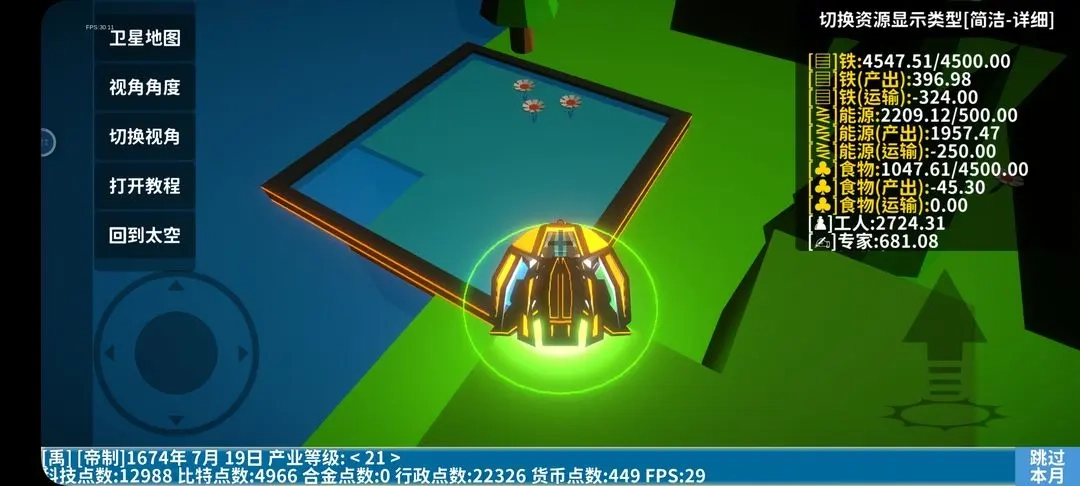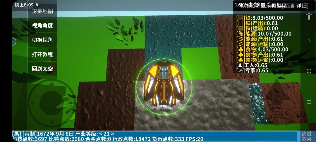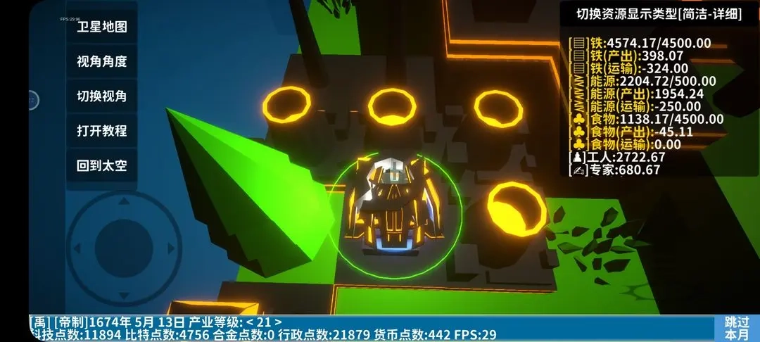 创建好地图后,游戏便正式开始。要推进游戏进程,需要找到两种关键资源——矿物与能源。