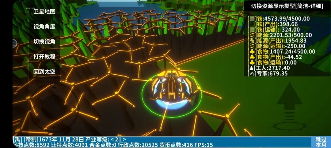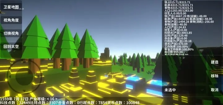 用科技点解锁钢铁森林以大量增加人口。剩下的科技点全都投入到矿井、发电站和实验室的升级上。风力发电厂没有额外消耗,不用升级节能相关的选项,只提升它的产量就行。