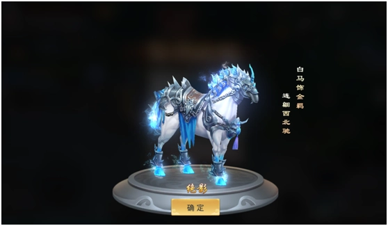 当玩家完成LV10的主线任务后,就能得到属于自己的第一匹坐骑——白毫汗马“绝影”。