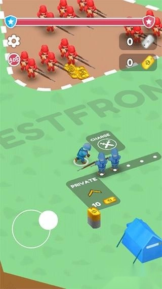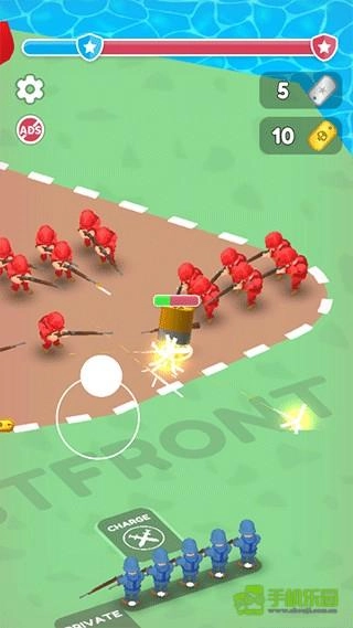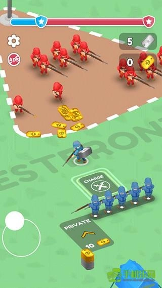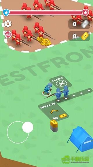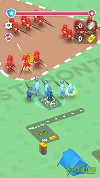 3、尽可能招募更多兵力。收集的兵力越多,你就会越强大。解锁特殊等级与装备。运用你的坦克、火箭炮和飞机对敌人发起攻击。别忘了大补给,有了联盟的助力,你能走得更远。