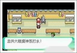 乘船抵达凯那市后,前往左上角的房屋,在那里战胜三位训练家就能获得六瓶提神苏打水。