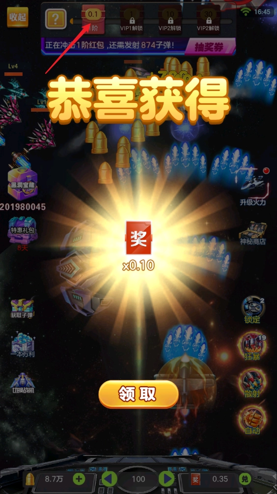 这是真的,在游戏里,没有复杂的操作或任务,只需持续射击就行,还能开启自动模式,挂机就能获取奖励!等收集到足够的奖券,就能兑换0.1元的红包,而且每天都能兑换一次哦!