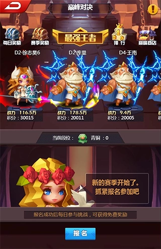 游戏内的段位包含青铜、白银、黄金、白金、钻石、宗师和最强王者几个等级。玩家每日可依据自身当前所处段位领取对应的每日奖励;而赛季奖励则需在赛季结束后,根据本赛季达到的最高段位进行发放,每个赛季的时长为三个月。