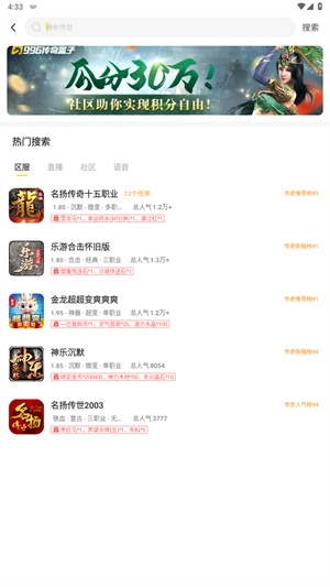3、还可以点击进入搜索框,输入传奇相关的名称,这样就能快速找到自己想玩的内容了。