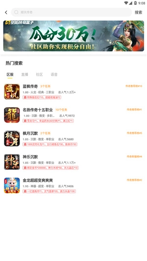 4、并且还能进入排行榜,主要包括推荐榜、新服榜、人气榜等。