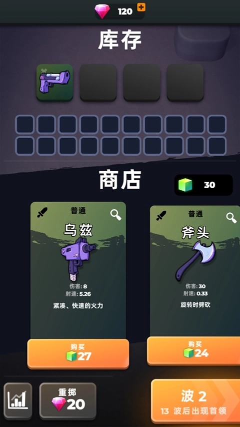 3、收集敌人掉落的全部材料,就能在商店里购买物品和武器了