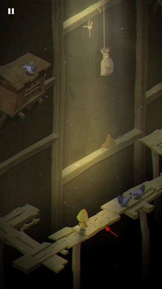 3、第一关会遇到大量鸽子,经过这里时要留意这块板子,当快要掉下去的时候,快速点击屏幕让摩诺移动到安全的位置上。