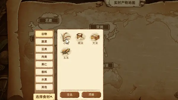 5、在地图里可以选择当地食材,每种食材都支持运输,以此促进更多贸易往来。
