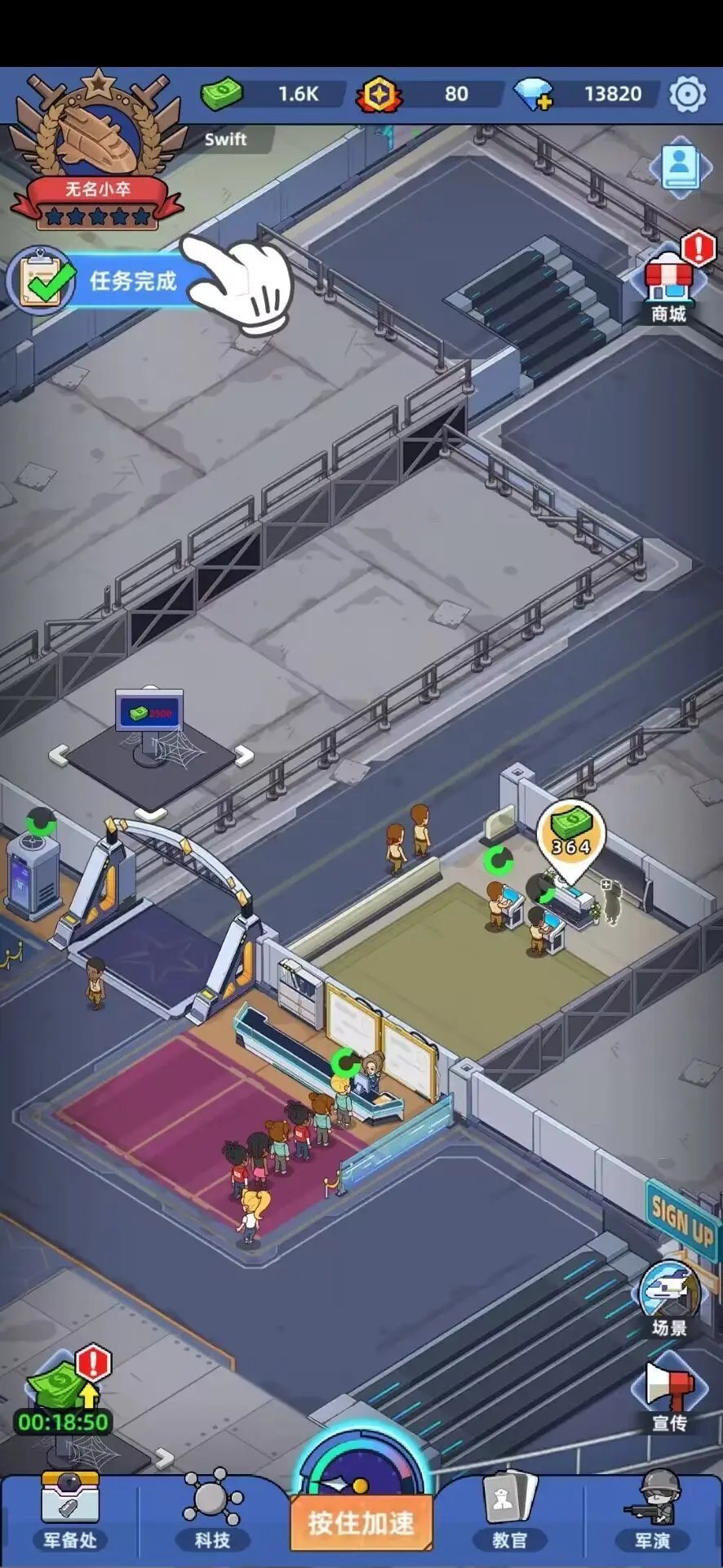 别闲着!在这款闲置游戏里,用你赚得的现金和黄金收益去投资,升级部队、解锁新区域吧。