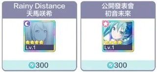 提升总分(★4《Rainy Distance》/天马咲希)(★4《公开发表会》/初音未来)