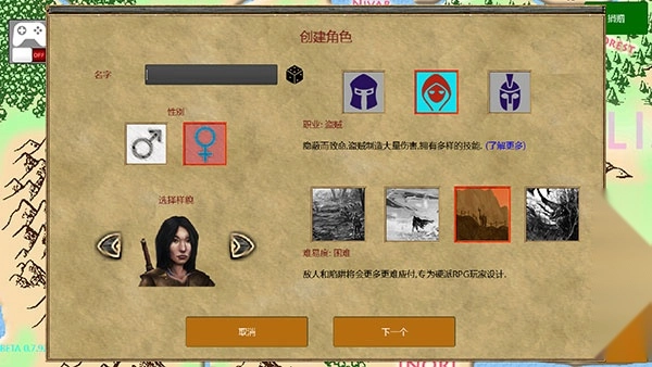 3、接下来需要创建角色,确定名字、外观、职业和难易度,职业与难易度的选择可参考下方的放逐王国攻略内容。