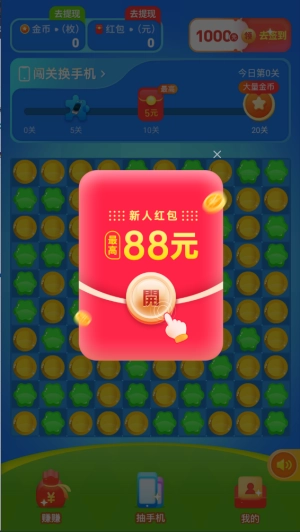 确实可行,上线就能先领88元红包,之后通过每日签到、闯关和完成任务来攒红包、金币奖励。红包攒够200元就能提现,金币是按10000:1的比例兑换提现,只要坚持签到保持活跃,多玩几天还是能提现不少钱的。