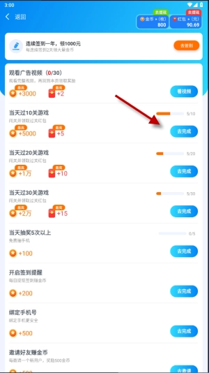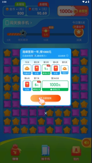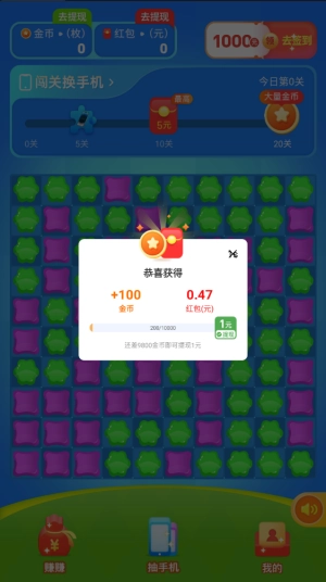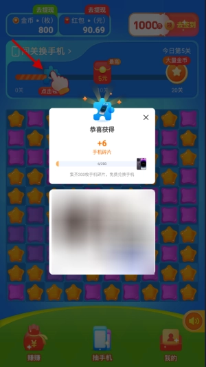 4、除了基础的通关红包外,当玩家达到特定关卡时还能领取额外奖励,像手机碎片这类物品,只要集齐200个就有机会赢取手机大奖。