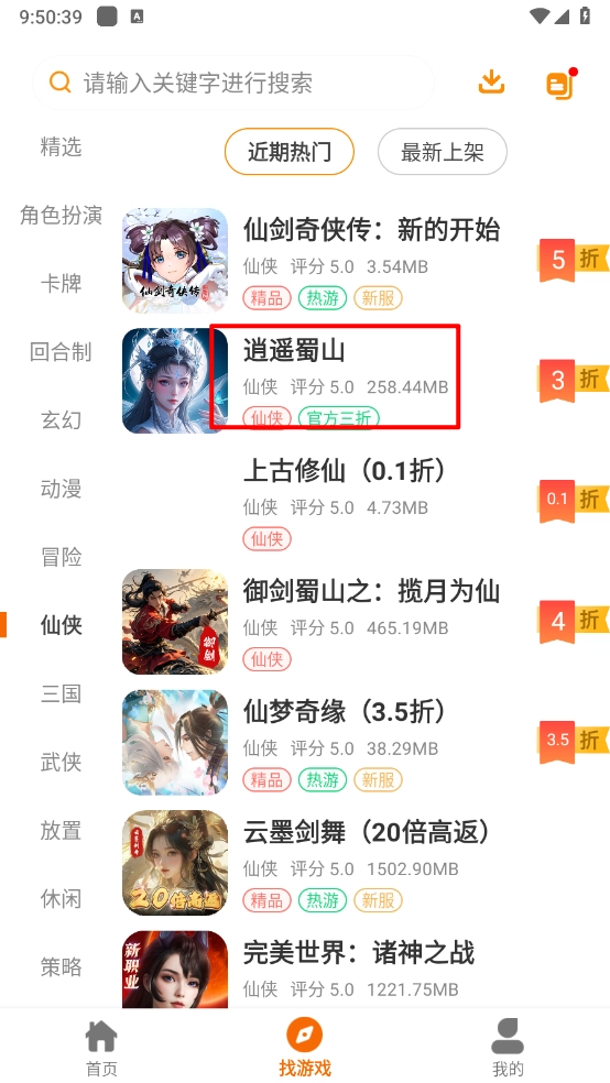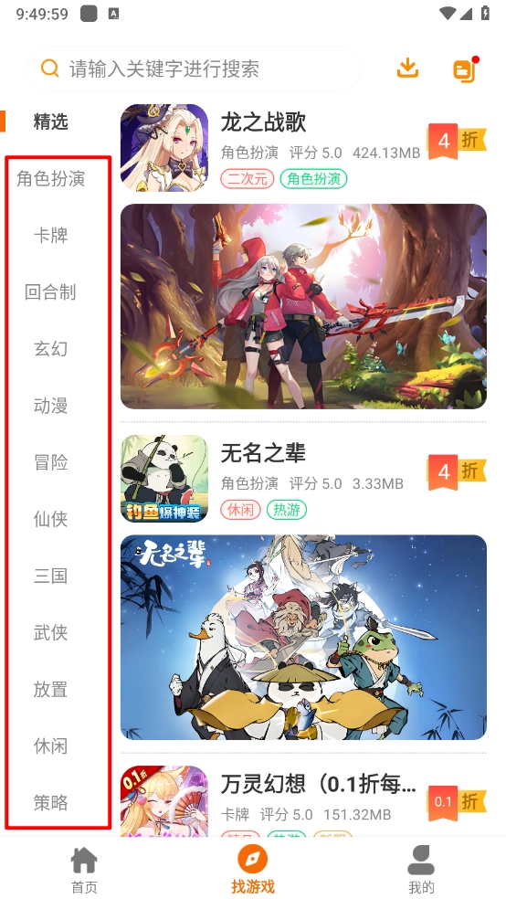 3、也能切换到“找游戏”页面,按照题材来挑选。