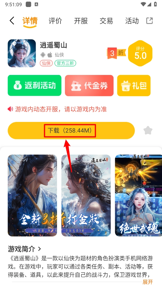 5、进入游戏详情页查看代金券和礼包,点击对应按钮即可。