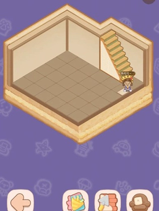2、接下来玩家可以点击建造按钮,首先需要简单搭建第一层:先铺好地铺,再放置一个楼梯,这样第一层就完成啦!