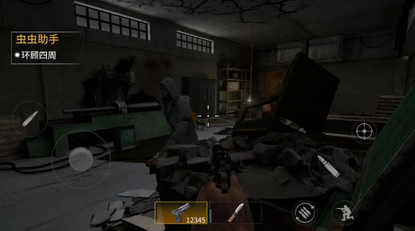 3、出现敌人时,可以点击放大镜进行瞄准。