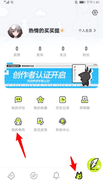 2、进入我的页面。点击"我的角色"。
