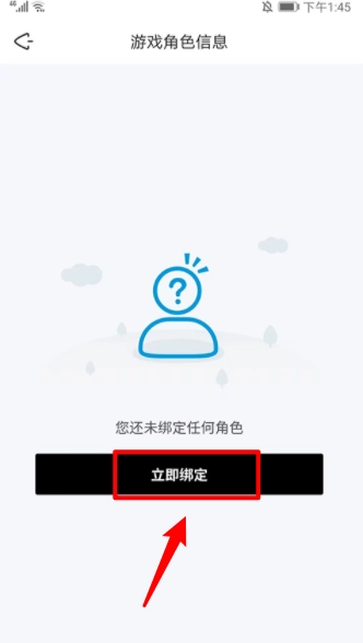 3、在游戏角色信息界面,点击"立即绑定"。