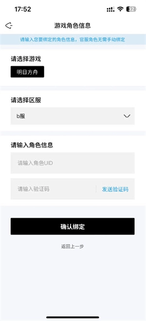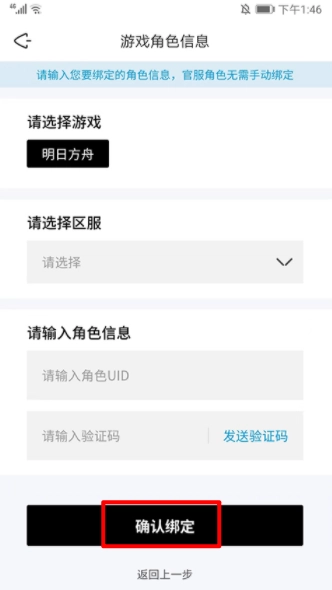 4、最后选择要绑定的游戏和区服,填写角色信息后点击“确认绑定”按钮就可以了。