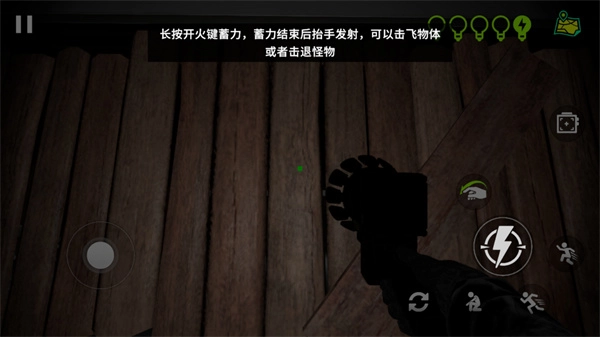 5、长按开火键进行蓄力,待蓄力完成后抬手发射,能够击飞物体或怪物。