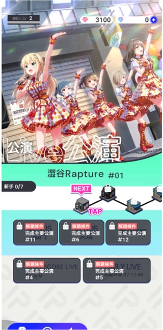角色培养:借助提高偶像的等级与技能,开启新的剧情以及Live技能。