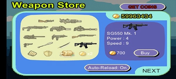 5、游戏中还加入了角色升级以及选择不同武器的系统,玩家能够使用通过关卡获得的金钱来购买各类武器,以此应对下一个关卡里的敌人