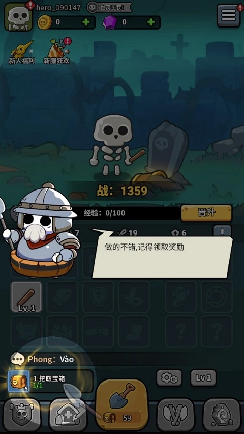 小小骨头人凭借独特的挖宝玩法圈粉无数,挖宝全程自动且完全免费,只需点击屏幕上的铲子就能即刻开挖,爆率高到离谱,各种极品装备一挖就有。玩家还能加入公会,和公会成员们并肩作战——骨头人可是很讲义气的!等你升级到特定等级,解锁关卡挑战玩法后,就能检验自己当前的实力了。对了,所有装备的外观都会直接体现在骨头人身上,快来打造专属于你的个性骨头人形象吧!