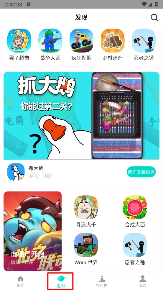 4、同时还可以切换至"发现"板块,选择畅玩。