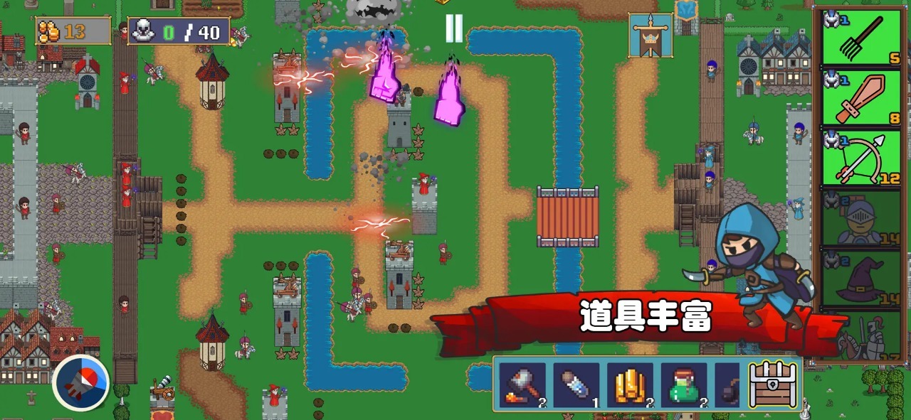 在《王国反击战》这款游戏里,存在着箭塔、魔法塔、炮塔等多种不同类型的防御塔,每一种防御塔都具备独一无二的攻击方式与效果。玩家需要留意防范敌人的偷袭,并且能够自由挑选各类闯关模式,目标是摧毁对方部队的城堡。在此过程中,玩家可以运用各式各样的策略和技巧,去掠夺敌方的资源,以此推动王国的发展,进而顺利通过冒险关卡,解锁全新的游戏内容。