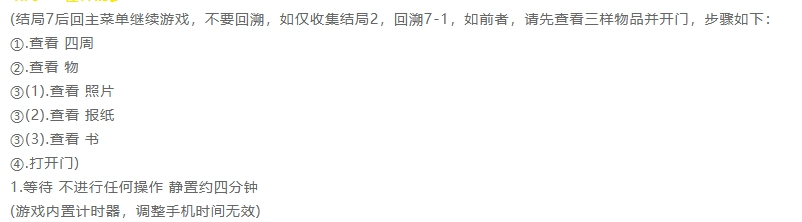 结局10:在病房流程里,查看完三样物品后会直接进入该结局,后续不会再出现其他选项。