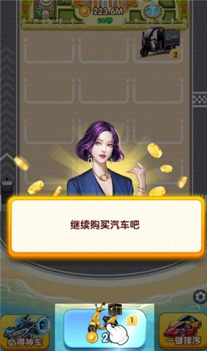 3、只需点击一键排序功能,所有车辆便能自动排列整齐,后续进行合成操作就会轻松许多。