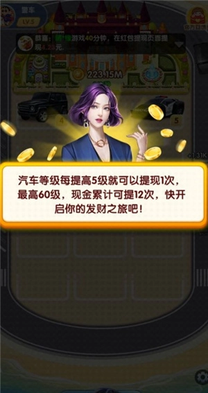 这是一款能让你轻松成为“人生首富”的休闲小游戏,核心玩法就是合成汽车赚钱。游戏里有各种各样的汽车,你只要通过合成就能解锁新车型,还能顺便领到大把红包。等攒够提现条件,分分钟就能到账,速度快得很,而且提现次数还不受限制,想提多少次都行。
