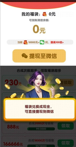 6、合成达到一定次数后能够领取福袋,该次数会持续刷新,福袋可领取的次数没有限制。
