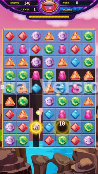 3、用手指滑动来交换相邻的宝石,只要能组成至少三个相同宝石的横线、竖线或者L型,就能将它们消除。