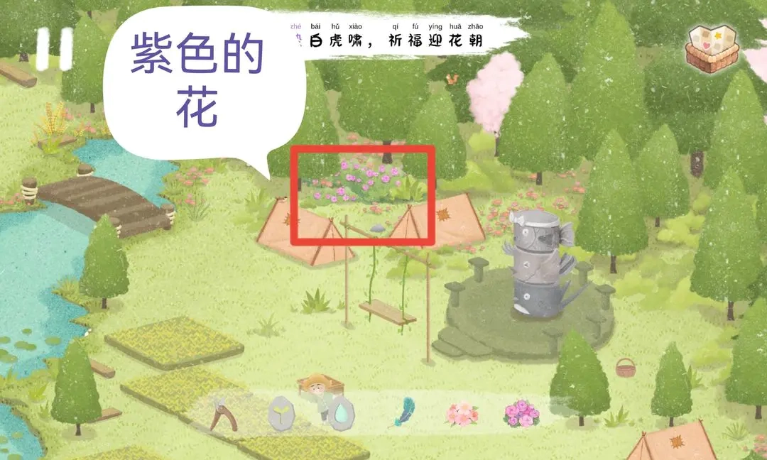 找到粉色、紫色、黄色花,交给惊蛰神得到惊蛰石。
