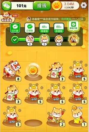 在百万旺财游戏里,新人只需轻松合成萌宠,就能领取红包;当萌宠等级提升到特定阶段,即可申请提现,所有提现均直接到账,全程无任何限制,大家可以放心操作,尽情体验合成玩法带来的更多乐趣。