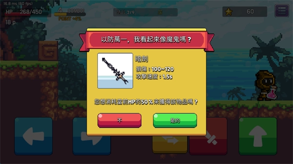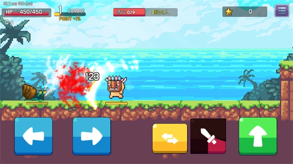 - 采用经典的横版像素闯关模式,玩家可操控角色进行左右移动、发起攻击、展开防御以及释放技能等操作;