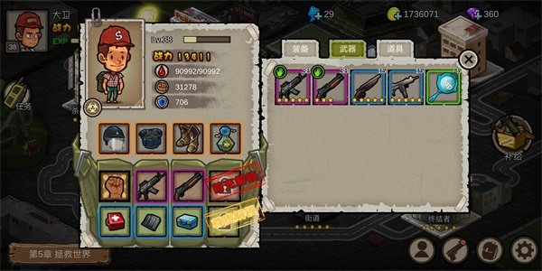 3、第三章第3关扫荡刷蓝色装备碎片(又见医院):3-3和3-4这两个关卡堪称专为扫荡设计的关卡,手动刷这两关只能拿到材料,而扫荡却能获取大量蓝色装备碎片。因此玩家只需持续扫荡这两关(尤其是3-4),将蓝色Sawed-off(群伤)和蓝色UZI(高攻速)合成并升到5星,换上蓝色头部、蓝色护甲、蓝色鞋子,再带上大蒜香水,只要弹夹充足,就能一口气推进到5-4关卡。