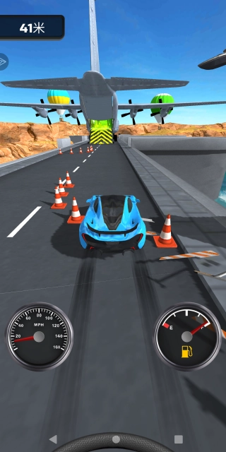2.玩家要操控汽车在变化多端的道路上行驶,冲破障碍的围堵,最终靠近并到达目标飞机,完成一段类似电影拍摄的追逐过程。