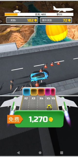 1. 玩家进入关卡后,可消耗金币升级汽车的引擎、燃料等属性等级,以此提高成功登上飞机的概率。