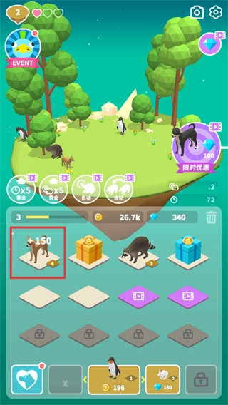 游戏里的所有动物都能进行归并操作,玩家可以收集各类动物来打造对应的萨法里,使自己的小岛增添更多动物种类。通过合成相同的动物,还能进阶为更高级的生物。