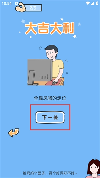 4、顺利找到鼠标后,界面会呈现【大吉大利】的提示,点击【下一关】按钮即可推进游戏流程。